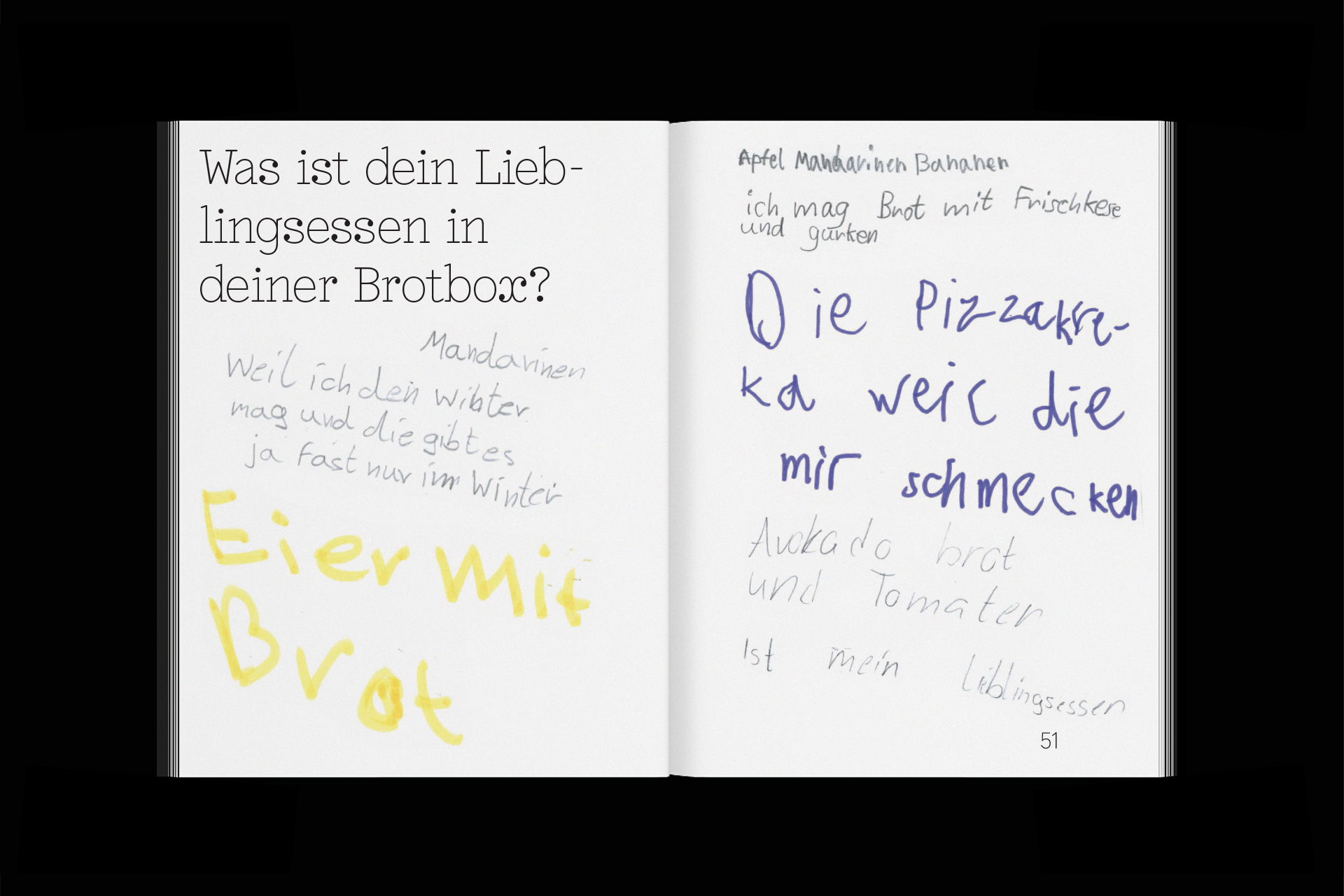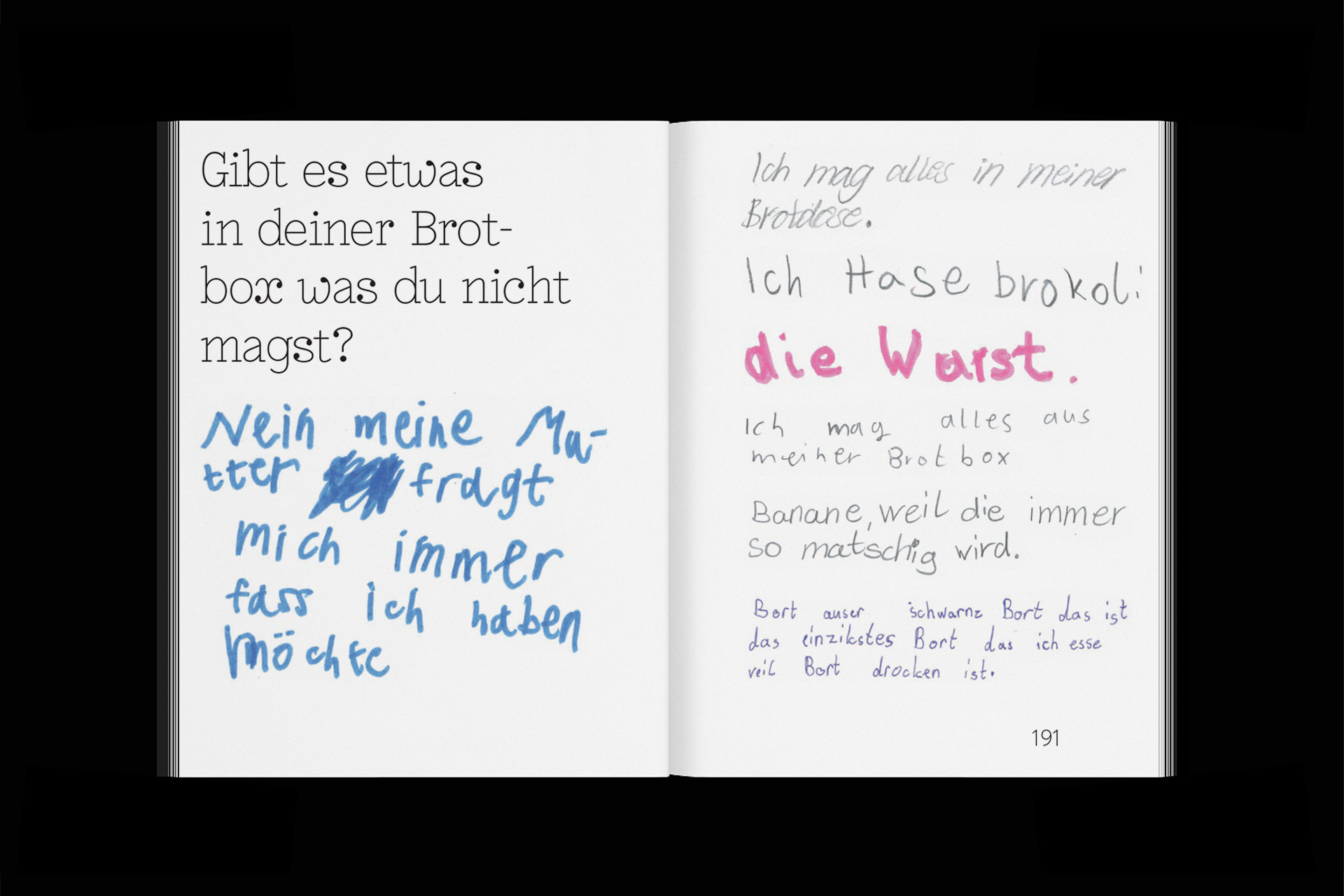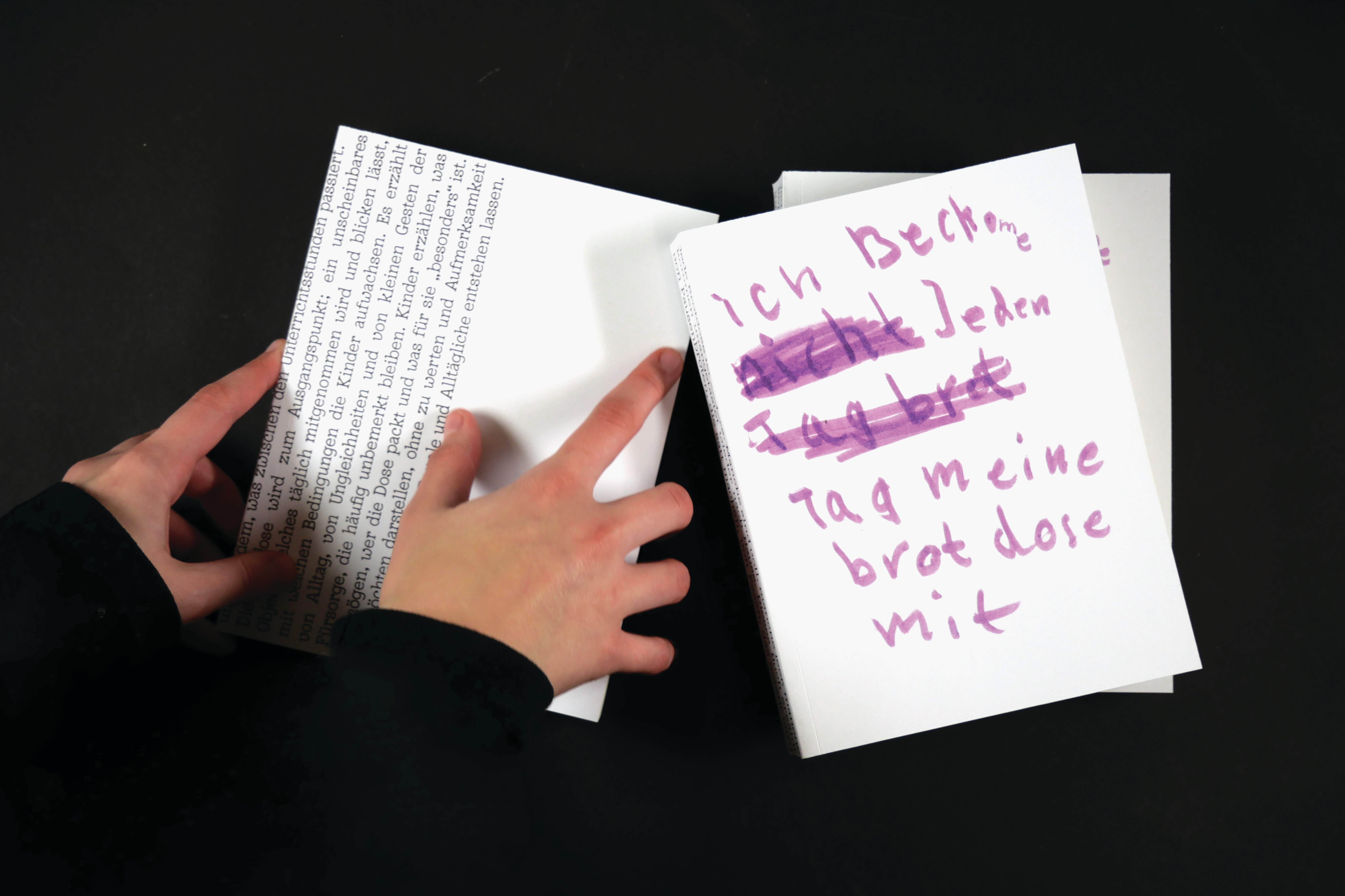 Die Publikation Ich bekomme jeden Tag meine Brotdose mit stellt eine kritische Auseinandersetzung mit den sozialen, kulturellen und familiären Faktoren, die in die Kindesernährung einfließen, dar. Sie beleuchtet diese anhand von Pausenbroten, die Grundschulkindern mitgegeben werden. Außerdem haben die Kinder selbst durch ihre Beschreibungen und Assoziationen dazu beigetragen, einen Einblick in Lebensrealitäten zu erlangen, die einem sonst verborgen sind. Sie haben dem Buch durch ihre Handschriften und Illustrationen Tiefe verliehen.