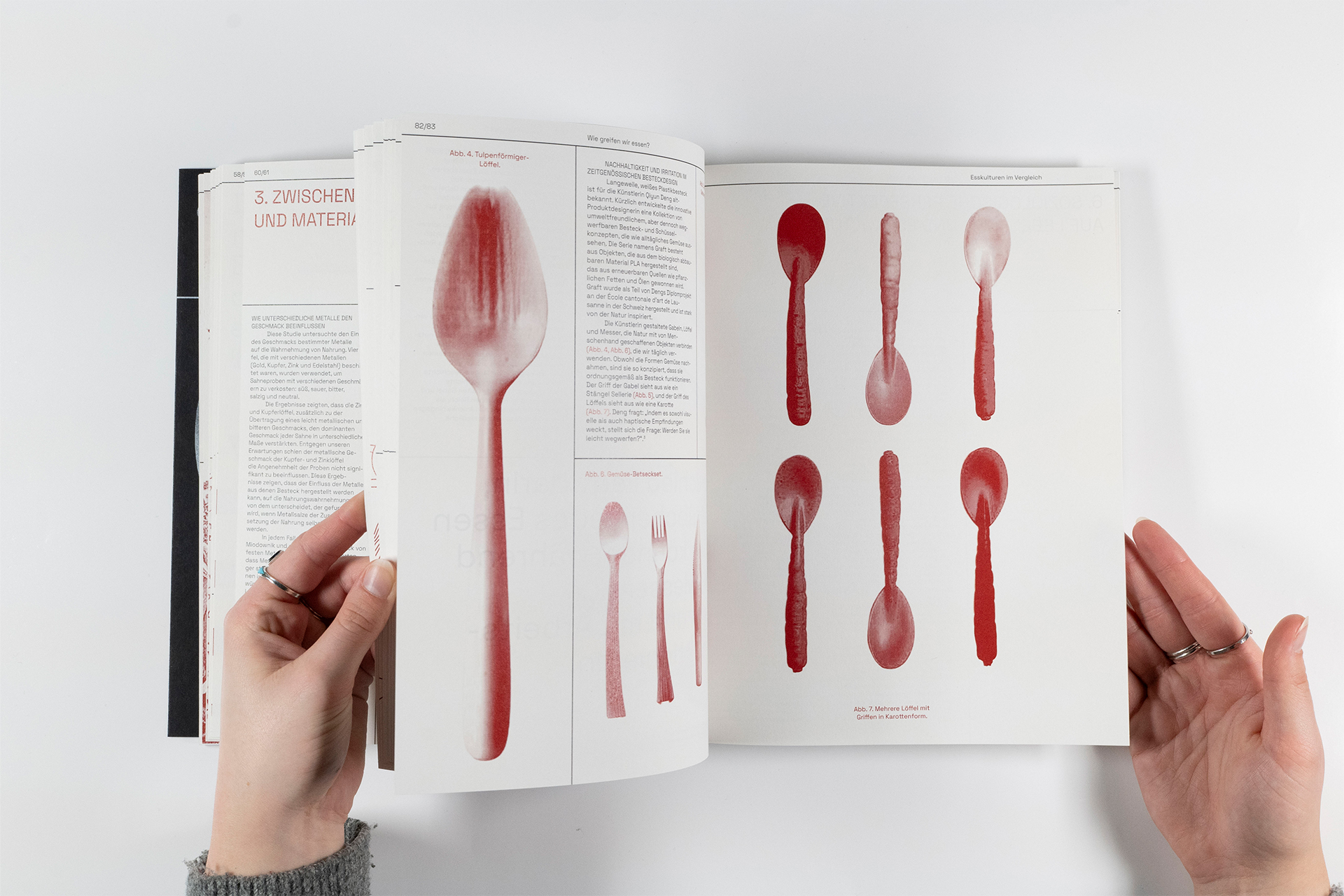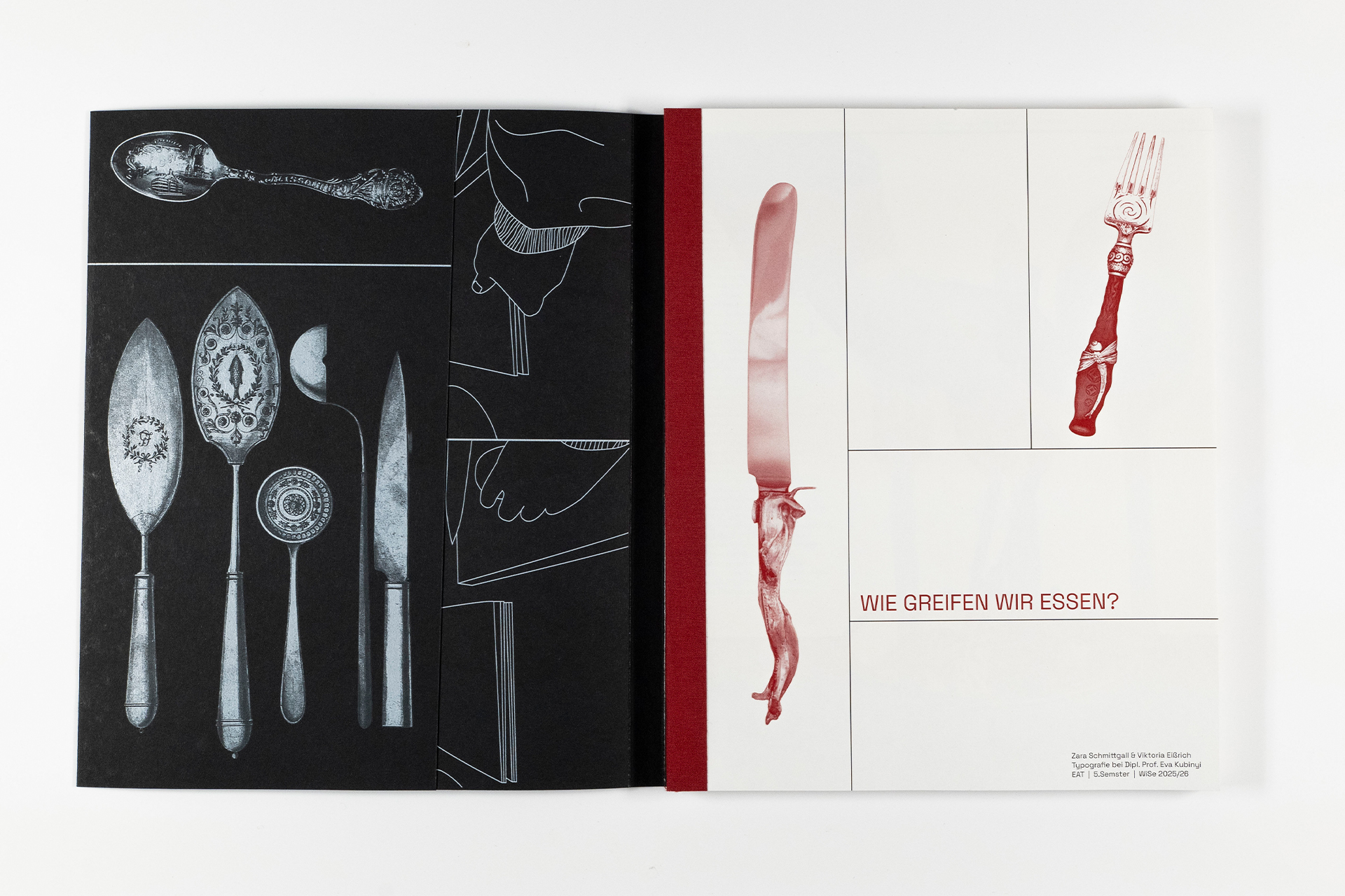 Besteck klingt alltäglich – Löffel, Gabel, Messer, Dinge, die wir meist gar nicht bewusst wahrnehmen. Doch genau das macht sie spannend: Warum essen wir eigentlich so, wie wir essen? Und warum machen andere Kulturen es ganz anders? Dieses Projekt entstand aus vielen Gesprächen, gemeinsamen Kochabenden und Experimenten zwischen Tradition und Neugier. Wir wollten verstehen, woher unsere Esswerkzeuge stammen, welche Geschichten sie erzählen und wie selbstverständlich Essgewohnheiten wirken, wenn man mit ihnen aufwächst. Ob Brotgabel, Kaviarlöffel oder Stäbchen – jedes Besteckstück verrät etwas über Kultur, Status und Kreativität. Die Publikation ist keine Anleitung zum richtigen Essen, sondern eine Einladung, vertraute Routinen zu hinterfragen und Essen als das zu entdecken, was es ist: etwas Verbindendes.